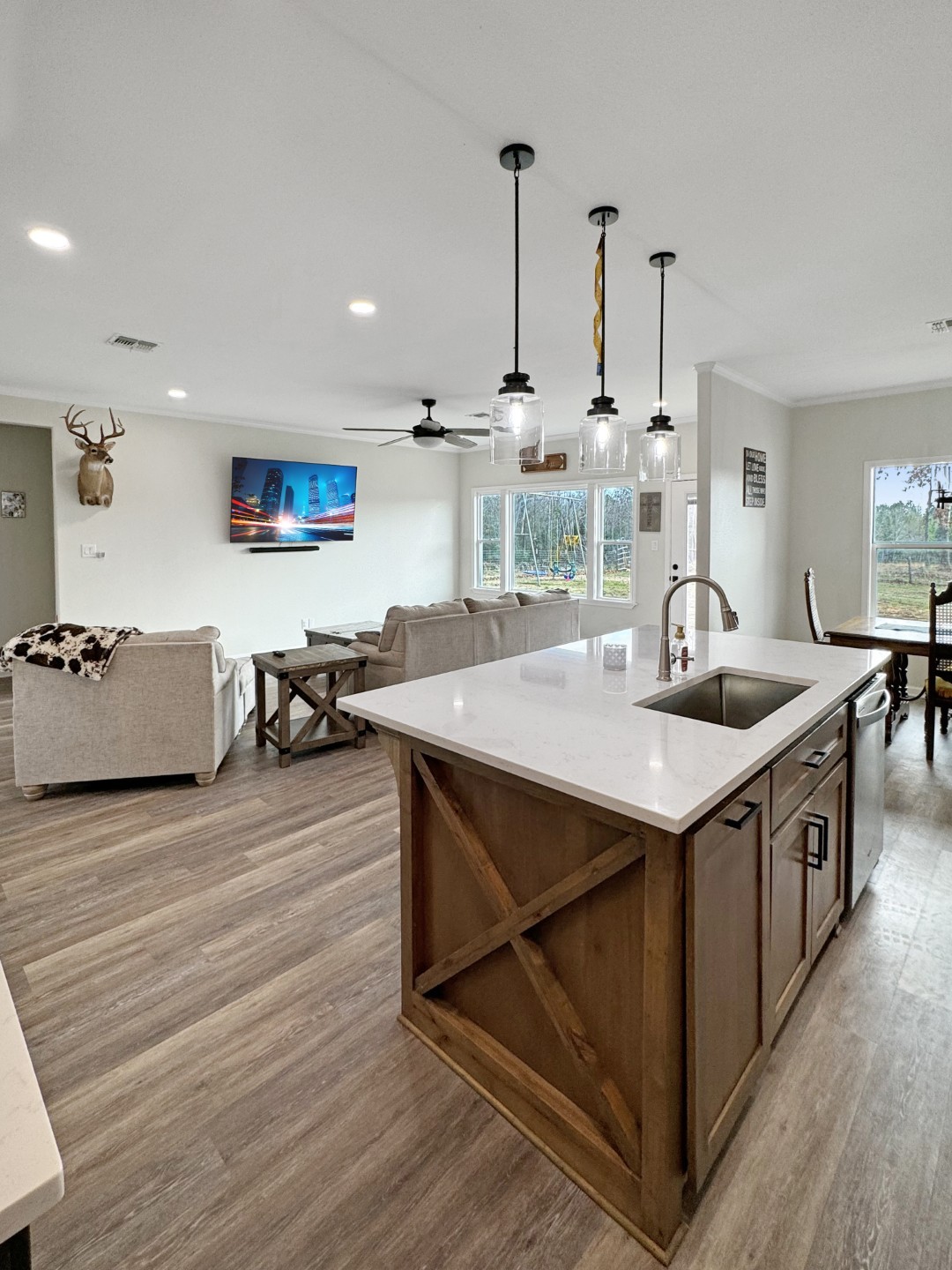 Discover modern living in this stunning newly-built home nestled in the tranquil surroundings of Henderson, Texas. This charming property features 4 bedrooms and 2 well-appointed bathrooms, offering ample space for relaxation and comfort. Boasting an interior space of 2158 square feet, every corner of this home is designed with a clean, contemporary aesthetic.