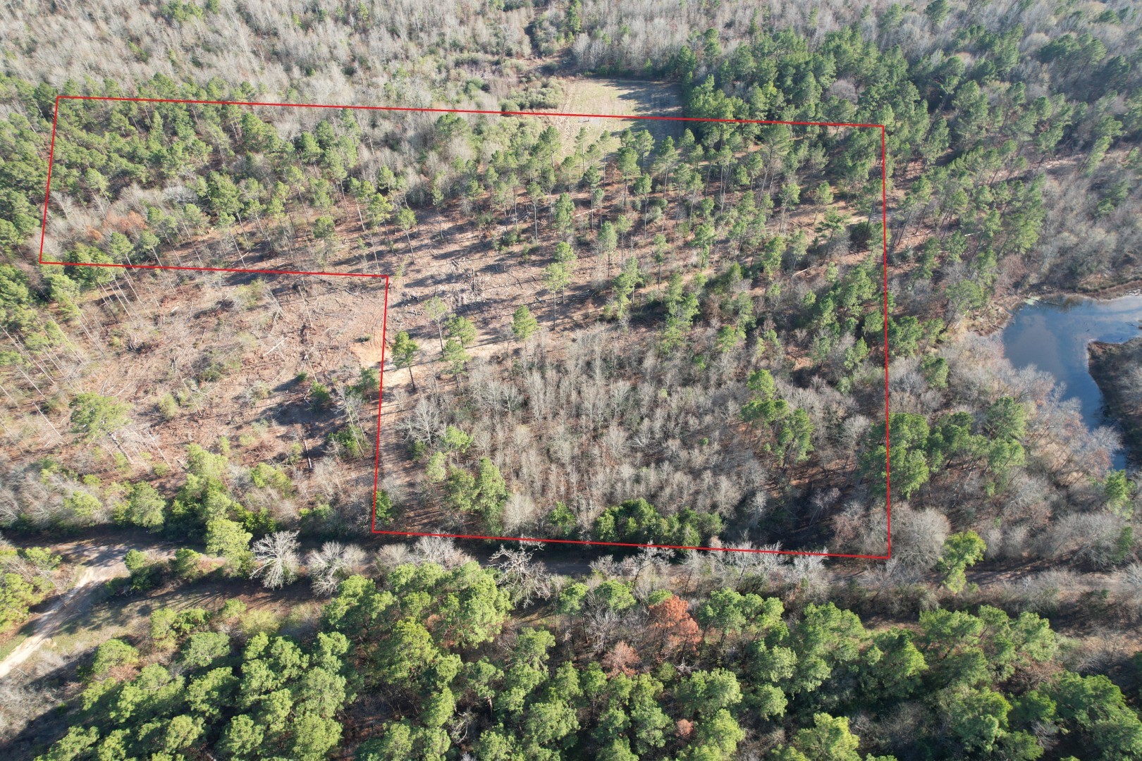 The property is composed of a 20 plus year old mid rotation pine plantation, offering both privacy and future timber value. A small portion of this tract has oil and gas activity, but takes up a very minimal footprint on this 12ac property.