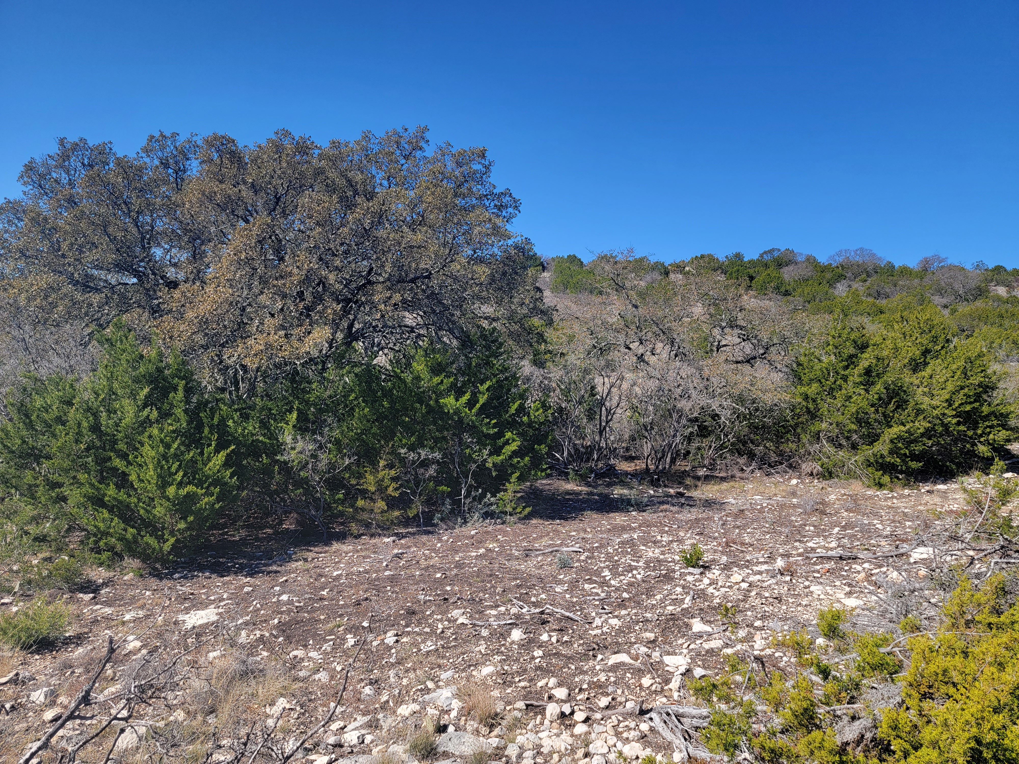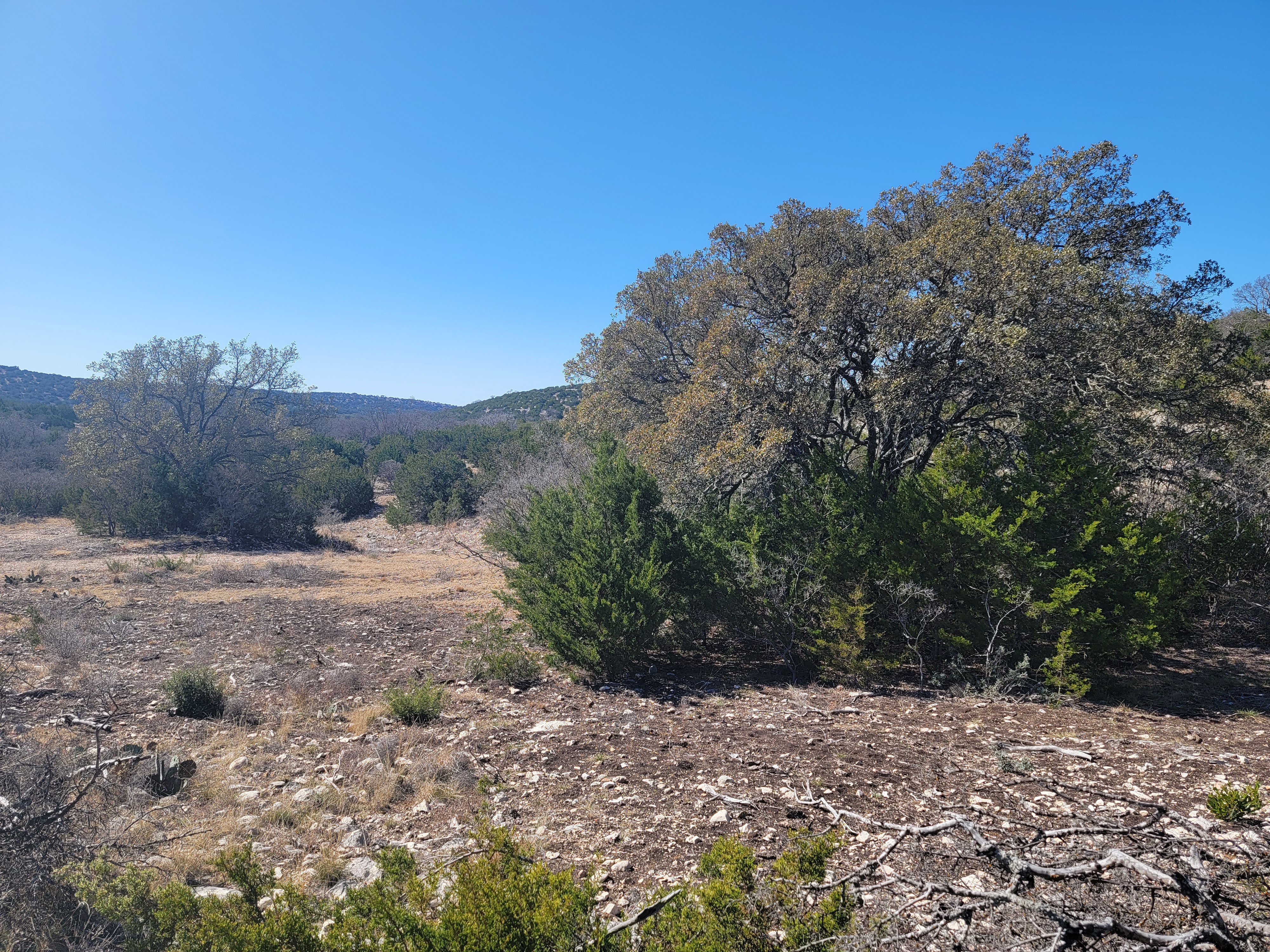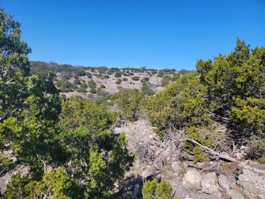 This secluded 38.95 acre wildlife paradise is easily accessible in a two wheel drive vehicle. The scenic topography consists of tall hills with beautiful views and lush valleys. Wildlife includes whitetail deer, turkey, hogs, axis deer, aoudad, fallow deer, and sika deer. Live oak, shin oak, persimmon, and juniper provide the wildlife with plenty of food and cover.