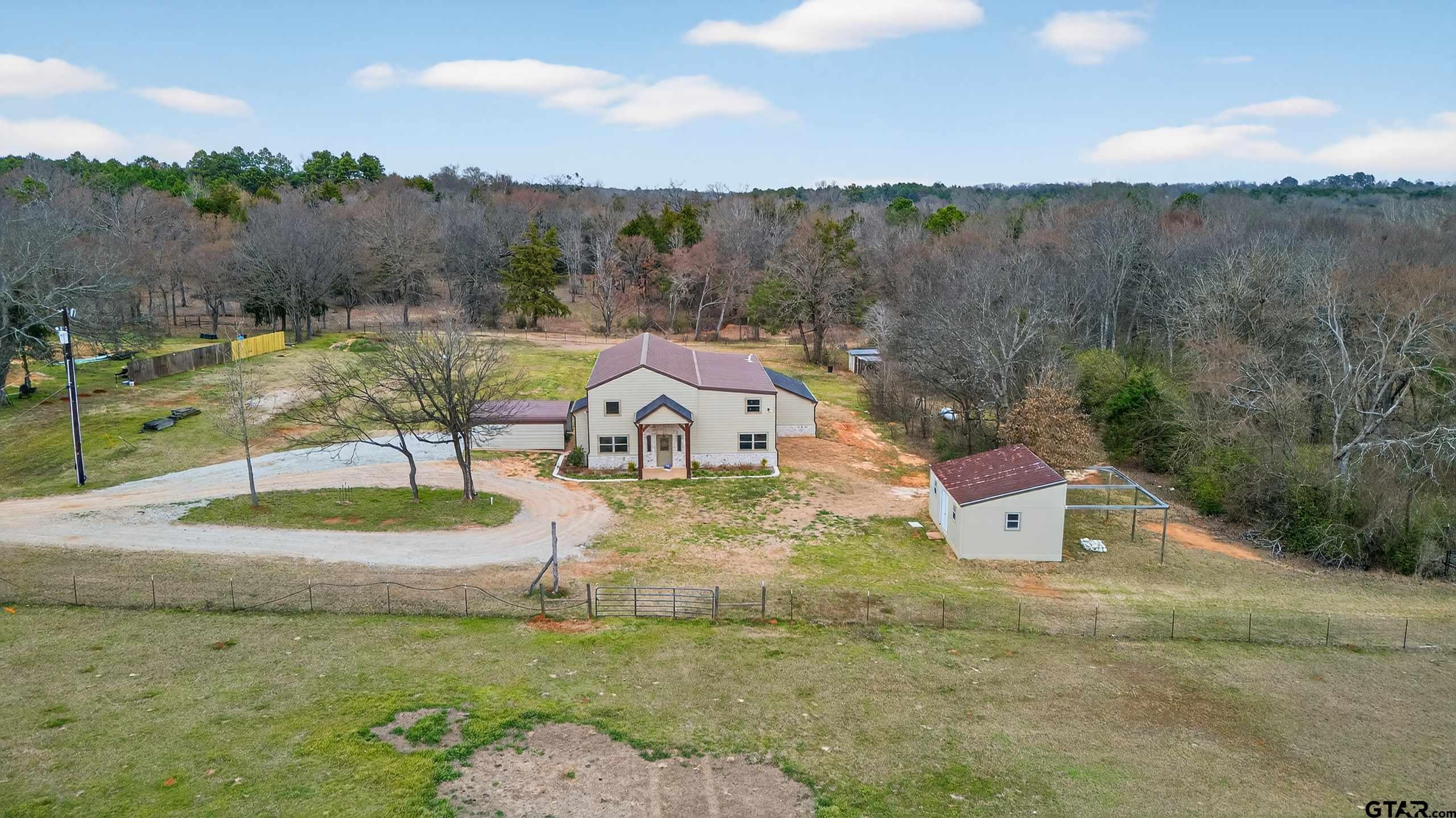 ****Seller is willing to pay for new survey and up to $20,000 of Buyers Closing Costs with acceptable offer!!! Awesome bardominium on 10+/- acres with lot of room to roam. This is the perfect blend of rustic charm and modern living in this 2920 sf, 1 1/2 story barndo offering 3 bedrooms, 2 1/2 baths, 2 living areas, 2 large laundry rooms. The extra laundry room off kitchen would be great pantry or office space. This open concept design features soring ceilings, a bright living room with plenty of natural light. Primary bedroom offers en-suite bathroom complete with large shower boasting rain head and multiple body sprays, large soaker tub, double sinks and private water closet. Each guest bedroom includes a private upstairs bonus loft area and nice sized closets. Great upstairs game/media room includes a bathroom and an enclosed balcony overlooking the downstairs living room. Concrete safe room is located under the staircase. HVAC is 3 yrs old, house has foam insulation and propane tankless water heater. Enjoy outdoor living with large covered back porch, an open deck area perfect for entertaining. Nice storage building and livestock run from front pasture to back acreage.